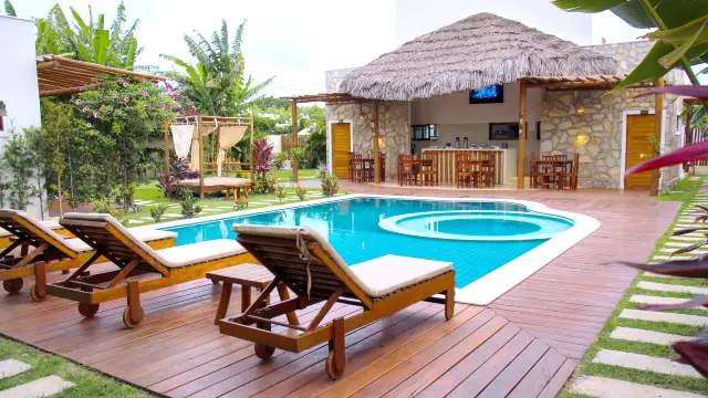 La Posada Vila Gostoso ofrece 10 villas privadas de 118 m² distribuidas en dos plantas, que combinan confort, exclusividad y hospitalidad. Cada unidad cuenta con living con Smart TV, cocina equipada, lavabo, 02 suites con baño, vestidor, balcón con vista al jardín y Wi-Fi. La estructura dispone de piscinas, jacuzzi, sauna húmedo, pileta de natación, servicio de masajes y un sendero privado para acceder a la playa con una caminata de 5 minutos. Contamos con servicio de desayuno artesanal, limpieza diaria y estacionamiento gratuito.