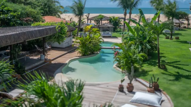 Con una ubicación privilegiada frente al mar en la Playa de Maceió, la Pousada dos Ponteiros es un refugio de tranquilidad y confort, galardonado con el Sello Oro del SEBRAE y excelentes evaluaciones. Su estructura completa incluye el restaurante “Balica”, piscina rodeada de vegetación nativa, estacionamiento propio y Wi-Fi gratuito. Para el esparcimiento, ofrece sala de juegos, biblioteca, espacio terapéutico y mirador con vista al mar. Los cabañas son amplios, decorados con arte local y equipados con balcón, aire acondicionado, máquina de café exprés y duchas solares. Una experiencia única para quienes buscan descanso y conexión con la naturaleza.
