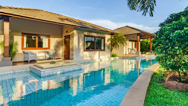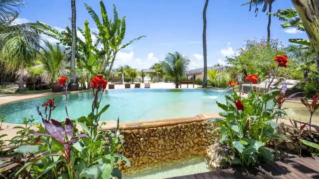 Piscina com área lounge exclusiva